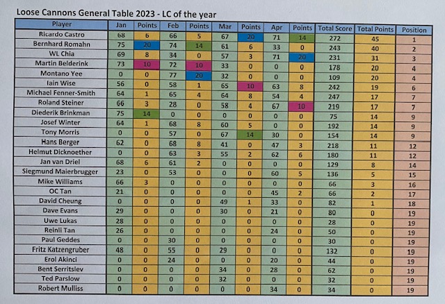 APRIL FINAL STANDINGS TABLE.