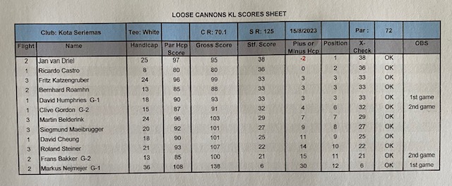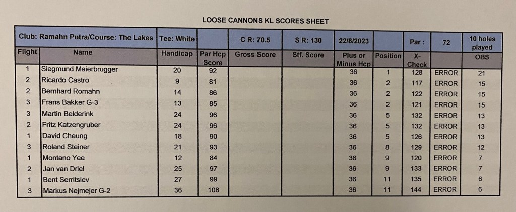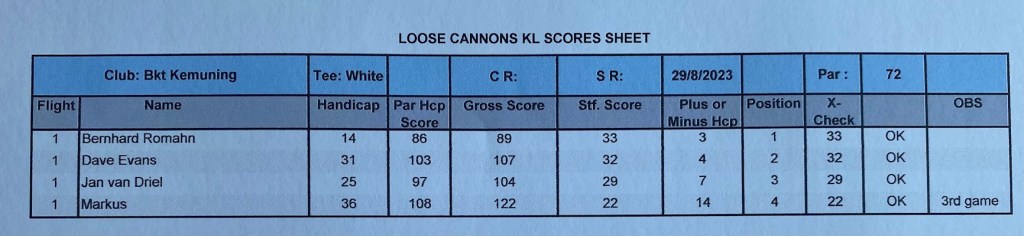 Only 1 flight this morning at Bukit Kemuning. It was very quiet at the course anyway. We managed to tee off at 7.30 and finished, even after the shower in about 4 hours.