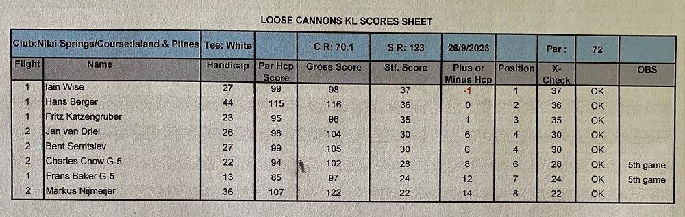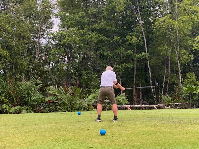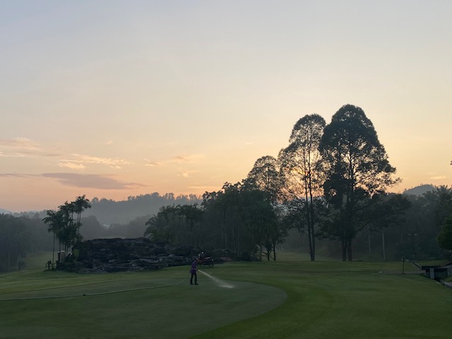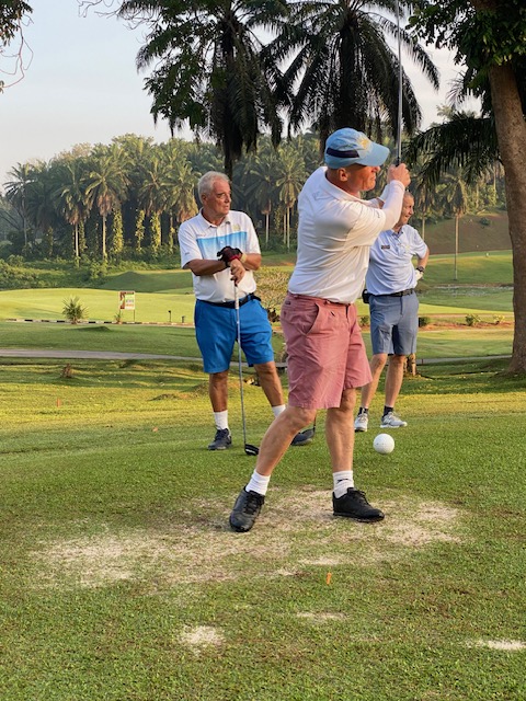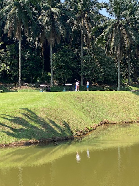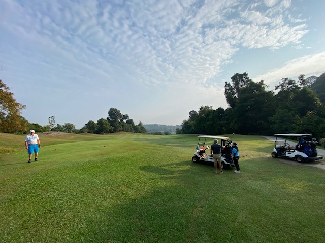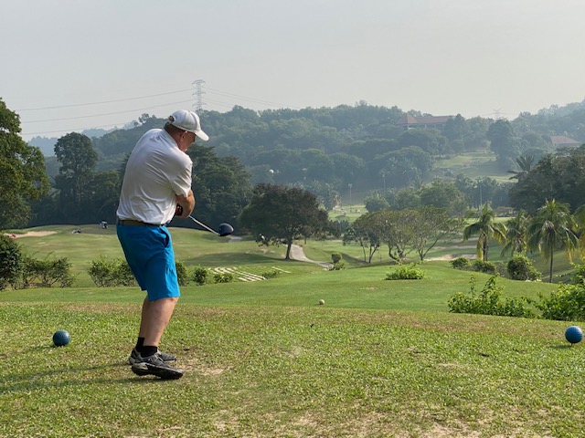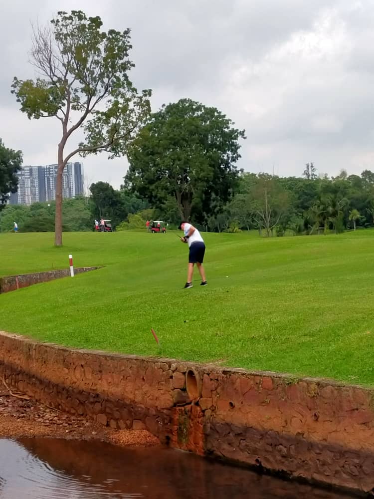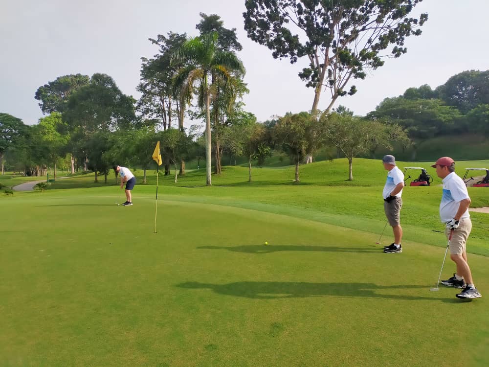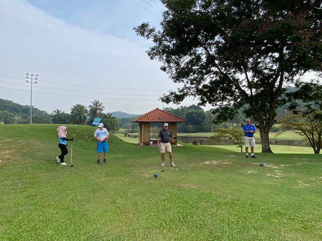 This morning we teed off at Nilai Springs well in time with two full flights. We played first the Island nine followed by the Pines nine. Always a good course to play on, well maintained, and hard greens. It must have rained quite a bit the previous night as some of the fairways were quite wet and soggy. The greens were very hard and undulating, so not always easy to read.