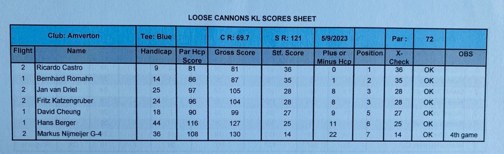 We welcomed Frans as a new member of Loose Cannon with his fifth game. We could have done that with Charlie as well, but he chose not to turn up for lunch.