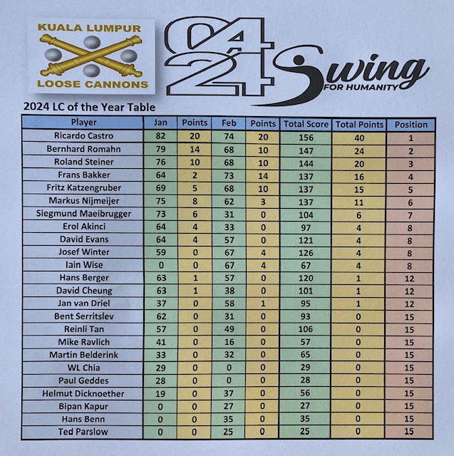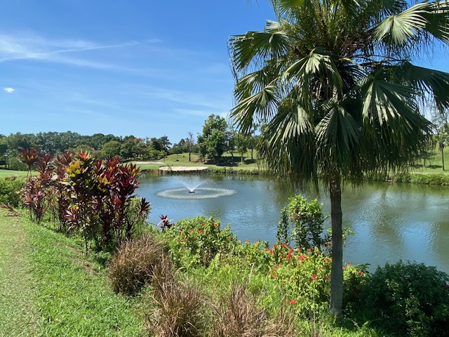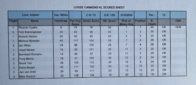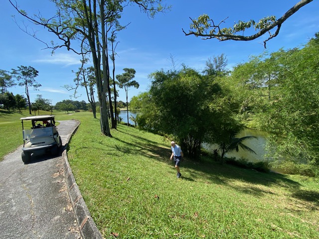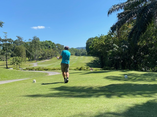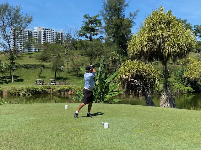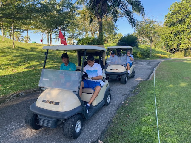 Finally, we are back to Impian for the last game of the month. The weather was nice, blue sky, shiny with some breeze but not so hot as last week at Tasik. The course is always in good condition with nice fairways and great speedy greens. All three flights started on the tee box one and the first nine were a little slow with some slow flights in front of us, but fortunately, the second nine these 2 flights just disappeared and we had a good pace and finished before 12:30 and a good time to drive to our favorite restaurant on the East side of the highway. The winner today was again Ricardo Castro with a nice 79 for 35 points beating OCT Fritz for 1 point (Last 6 holes), and in third place was Roland Steiner (local member) with a razonable 95 for 33 points. With these results, Ricardo is the February champion (4th time in a row) with 74 points, in second place is Frans Bakker with 73, and in third place Bernhard with 68 points. Fritz Katzengruber had his birthday gift and Markus contributed 50.00 Rm for the lunch (Didn’t pass the lady’s tee), and we all appreciate the donation. Seven of us drove to the restaurant using the new highway and we reached the place in 20 min. Lunch was nice with cool beers and some watermelon juice. Next week we will be in Batam for our away tour and the regular game will be held at Batam Hills to open in style the March competition.