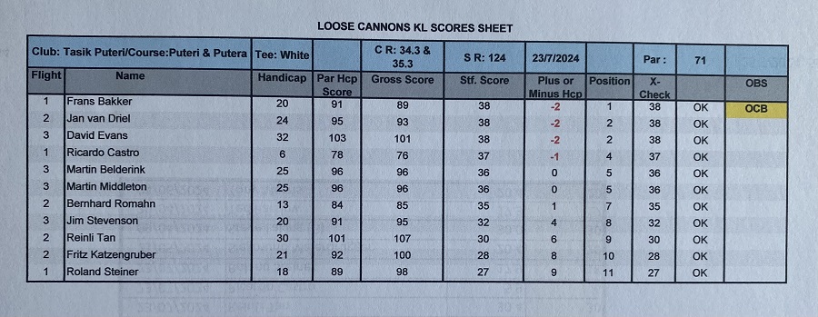 The last game of July was held at Danau, one of the most infamous golf courses for some of our members for different reasons and excuses. Today we had 3 flights (11 players) and all started before 8:00 am on hole # 10. Sunny weather and blue sky all morning turning hot and dry around 9:30 am. The fairways were dry, with nice and fast greens, but some, the pin position was quite challenging for most of us, costing a lot of puts, but that’s Danau greens, always like this all the time we play there. The winner today was David Cheung with a fantastic score of 85 for 40 points, second place, Jan van Driel also with a nice 92 for 38 points, and in third place with the lowest gross of the day, was Ricardo Castro with a solid 76 for 37 points. With these final results, Jan van Driel is the July champion with a total of 84 points, followed by Ricardo Castro with 80 points, and in third place, Martin Middleton and David Cheng, booth with 79 points. For the LCOTY competition, Jan van Driel took over second place with 65 points, Bernhard is now in third place with 64 points, and the leader, Ricardo Castro consolidated his first position with 86 points. I must say July was very competitive, with quite high scores, making the competition for the last 5 months quite interesting and good quality of golf. Free lunch, sponsored by the LC Kitty, at East of Highway restaurant for eight of us, with a nice food selection ordered by our F&B expert, Iain Wise, but he had some problems with the Chinese staff ordering the Currie Vegetables dish (quite a common dish in KL), taking a few minutes and 3 people to understand what Iain was asking.