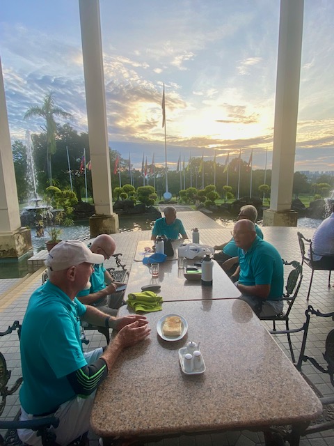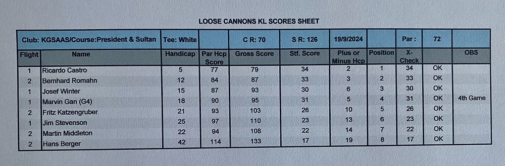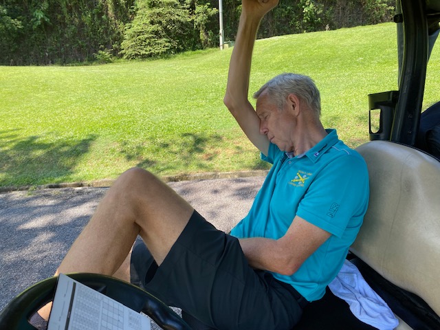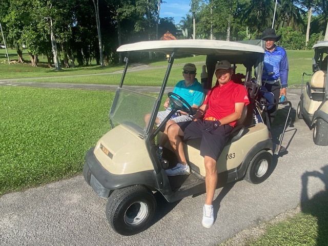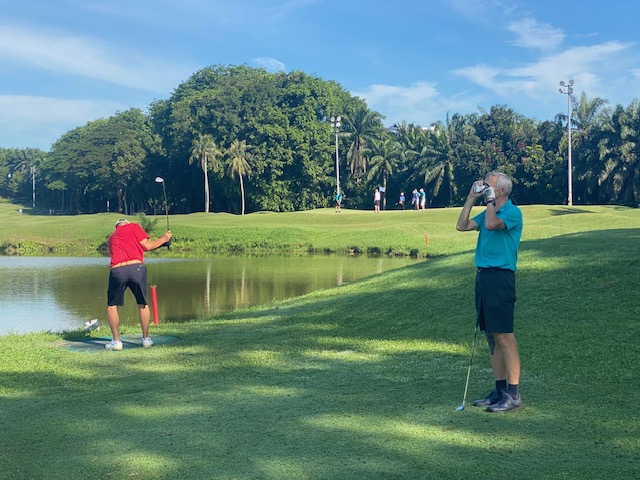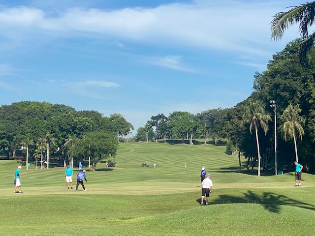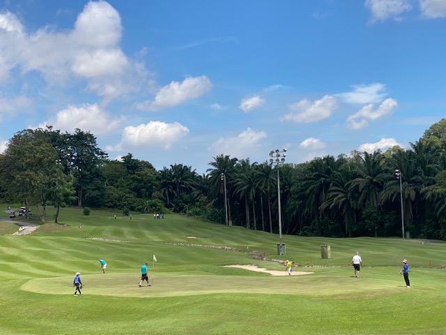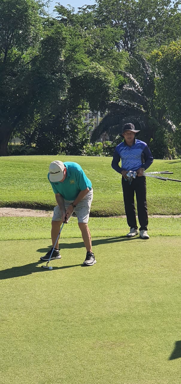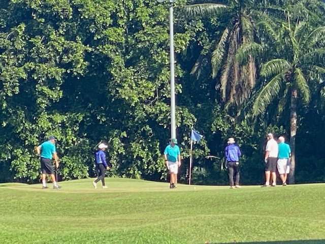 Due to the long weekend holidays, our game had to move to Thursday at KGSAAS. Two full flights were ready before 8:00 am on the President Nine, crossing over on the Sultan Nine. Even with all the rain from the last few days, the course was in good condition, but you can see most of the fairways starting to get muddy, with good, but difficult greens with a nasty pin position. Overcast weather before the game but when we teed off the sun was already very bright and strong, and all morning was very hot. Marvin Gan played his 4th game, and once more he will have the full membership. The winner today was Ricardo Castro with a nice 79 for 34 points, second, Bernhard Romahn with 87 for 33 points, and in third place Josef Winter with 93 for 30 points. With these results, Ricardo is leading the pack for the monthly competition with 72 points, second Fritz with a nice number, 69, and in third Bernhard with 68 points, so all are open for the last game of the month in Bkt Unggul.