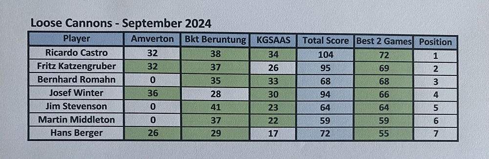 SEPTEMBER COMPETITION CURRENT STANDINGS.
