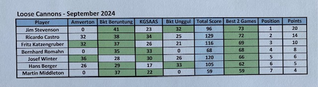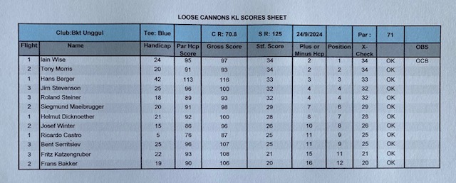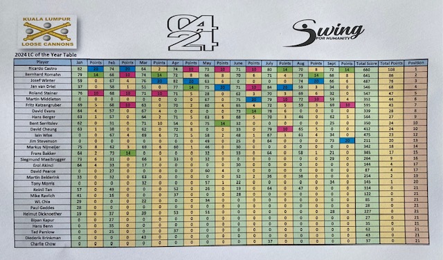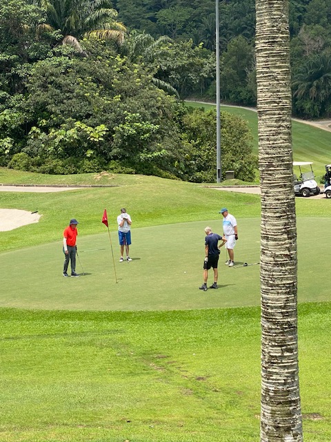 Back to Malaysia’s most haeted golf course, with three full flights starting from hole # 10. The course was in good condition, but we had to fight with sandy greens for the first nine, and the weather was hot and humid. The winner today was Iain Wise with 34 points, beating Tony Morris OCB, and in third place was Hans Berger with a nice 116 for 33 points, even playing from the blue tees. With these results the monthly winner is Jim Stevenson with 73 points, second place Ricardo Castro with 72, and in third place Fritz Katzengruber with 69 (nice number). For the LCOTY competition, Ricardo Castro cemented his first position, with 108 points, followed by Bernhard Romahn with 86, and third place, Josef Winter with 76 points. October games will be decisive for the final standings. We had lunch at East of Highway and to celebrate his departure for good to Hua HIn, Bent Serritslev contributed 250.00 Rm for the bill. We all wish him a happy life in Thailand and when you back to Malaysia, LC group is your home. As you know next week, we will be playing in JB for our 2024 away games.