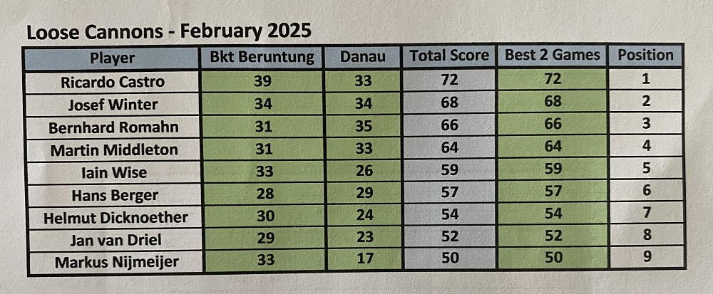 FEBRUARY COMPETITION CURRENT STANDINGS.