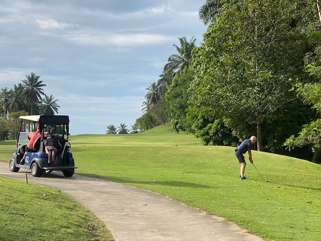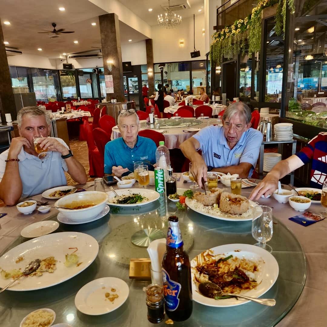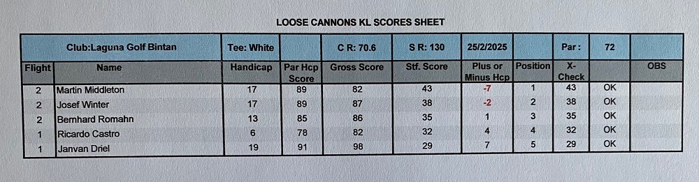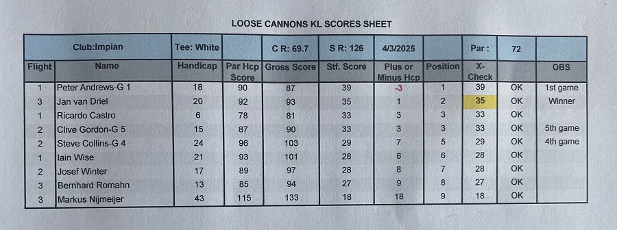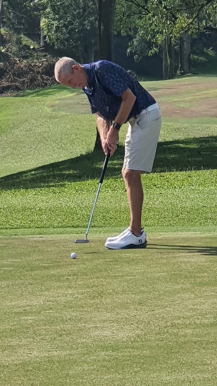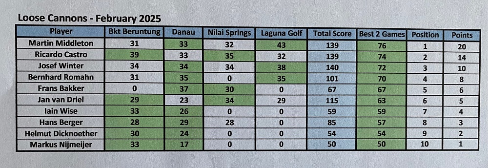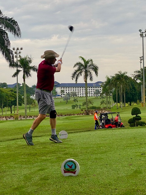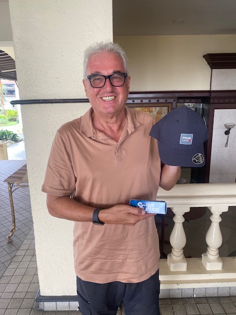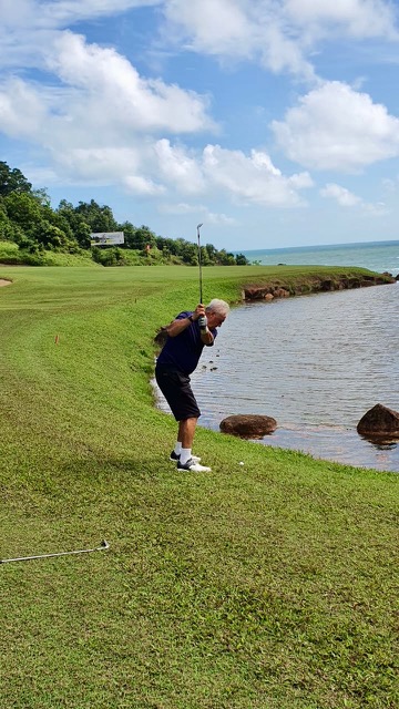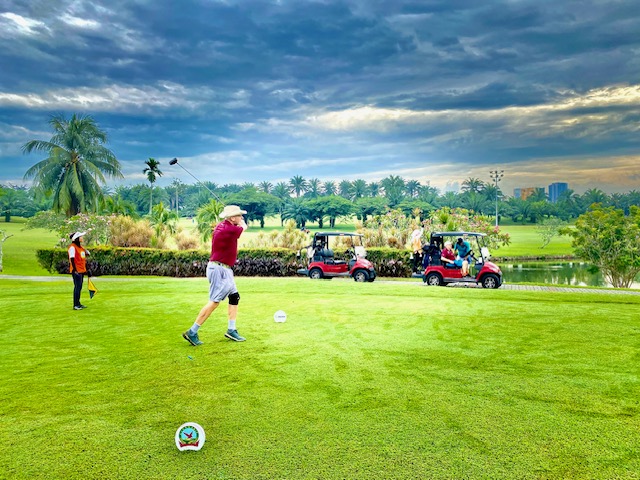 The last Ramadan game was held at KGSAAS, with humid weather and dark clouds all morning, but luckily we ended up the round dry and happy. Two flights started on President Nine, crossing over to the Alam Nine, at a fast pace as the course was empty and we all finished before 11:30 am. The course was wet with some plugged balls but overall was playable with slow greens on the first nine, but Alam course the greens were sandy and quite fast. The winner today and following his good form was Iain Wise with a solid 38 points, second was Ricardo Castro with a reasonable 80 for 34 points, and in third place, Jan played 96 for 32 points. With these results, Iain Wise is the March champion, beating Frans Bakker (72) on the last turn with a nice 73 points, and Roland Steiner in third place with 69 points (nice number). For the annual competition, Iain is now leading with 44 points, second is Ricardo with 36 points, and in third place is Martin Middleton with 33. We finally celebrated Bernhard Romahn’s birthday and he made a generous contribution of 200 rm to our bill, and he got a nice PING cap and one LC sleeve of balls as a birthday gift. Next week we will be playing Seri Selangor on Thursday 3rd of April due to the Hari Raya festivities.