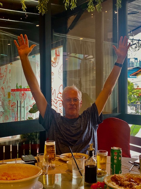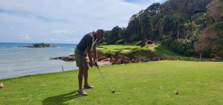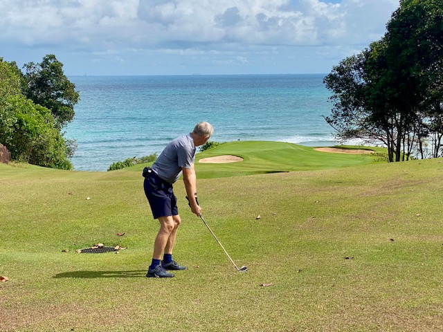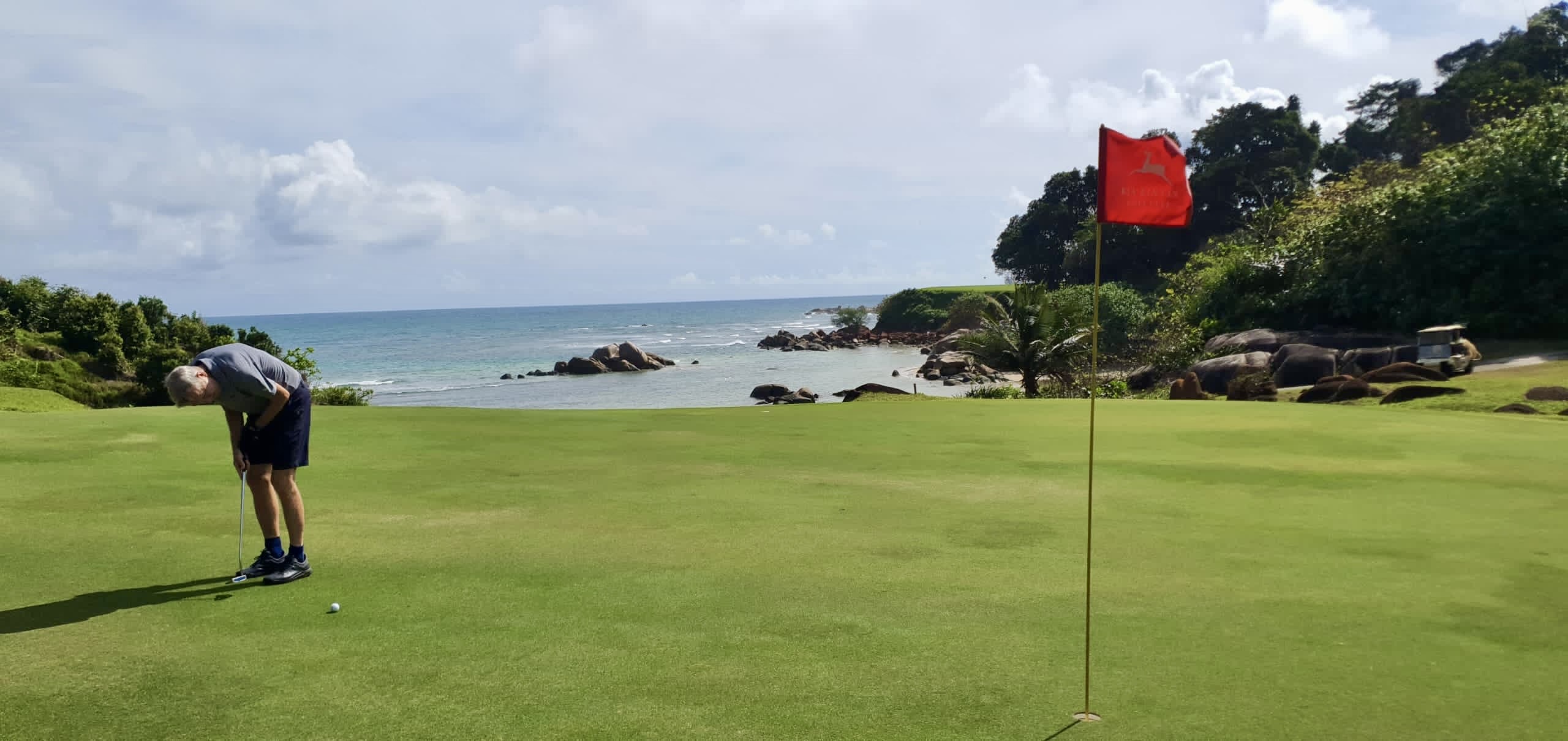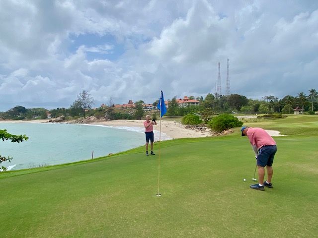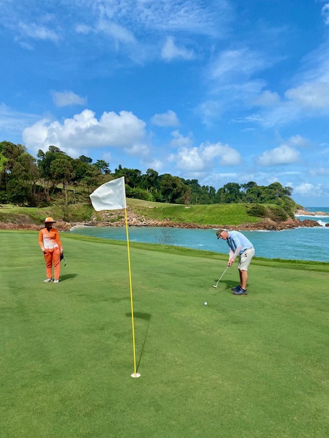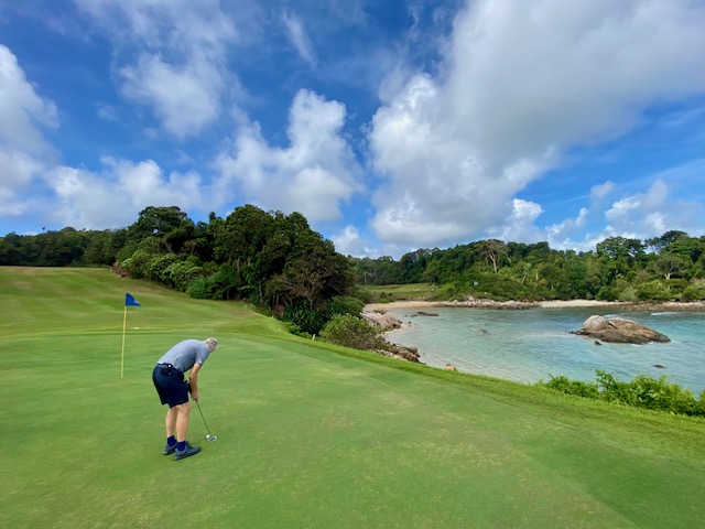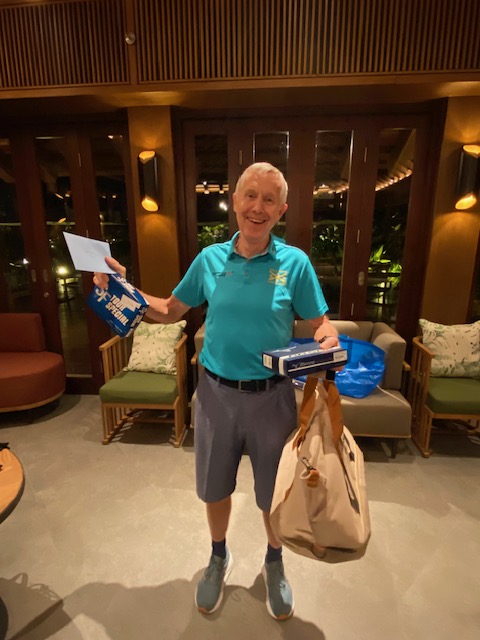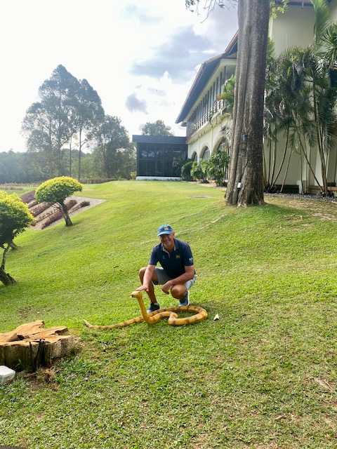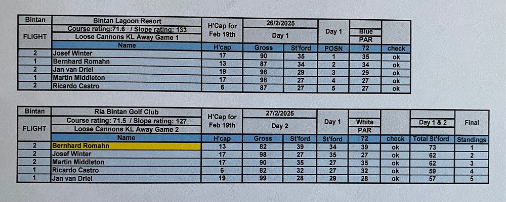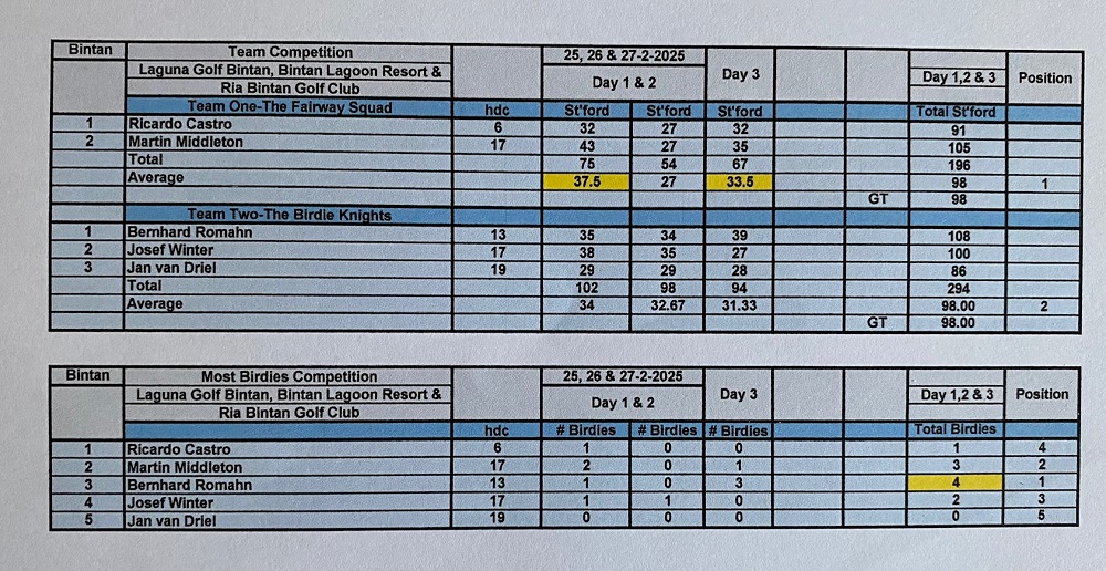 The last Ramadan game was held at KGSAAS, with humid weather and dark clouds all morning, but luckily we ended up the round dry and happy. Two flights started on President Nine, crossing over to the Alam Nine, at a fast pace as the course was empty and we all finished before 11:30 am. The course was wet with some plugged balls but overall was playable with slow greens on the first nine, but Alam course the greens were sandy and quite fast. The winner today and following his good form was Iain Wise with a solid 38 points, second was Ricardo Castro with a reasonable 80 for 34 points, and in third place, Jan played 96 for 32 points. With these results, Iain Wise is the March champion, beating Frans Bakker (72) on the last turn with a nice 73 points, and Roland Steiner in third place with 69 points (nice number). For the annual competition, Iain is now leading with 44 points, second is Ricardo with 36 points, and in third place is Martin Middleton with 33. We finally celebrated Bernhard Romahn’s birthday and he made a generous contribution of 200 rm to our bill, and he got a nice PING cap and one LC sleeve of balls as a birthday gift. Next week we will be playing Seri Selangor on Thursday 3rd of April due to the Hari Raya festivities.