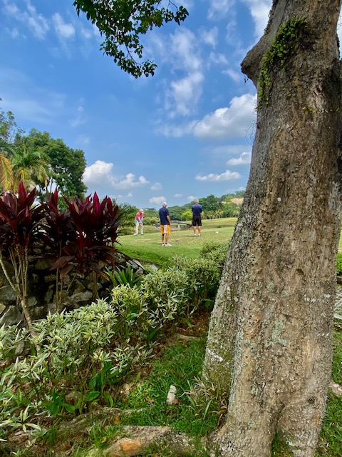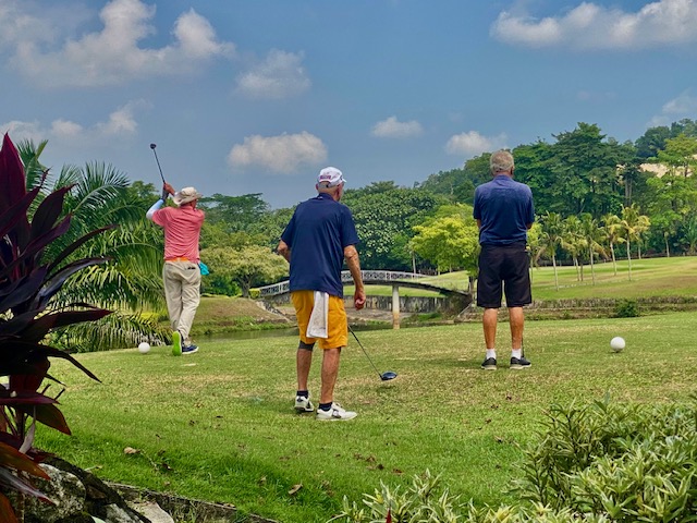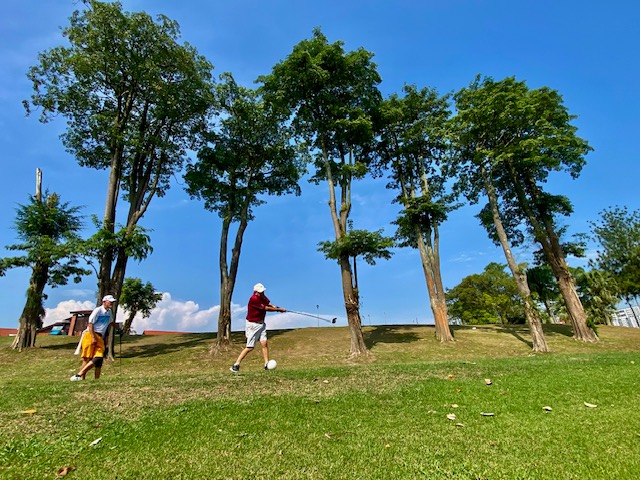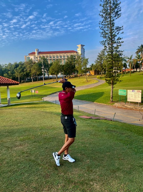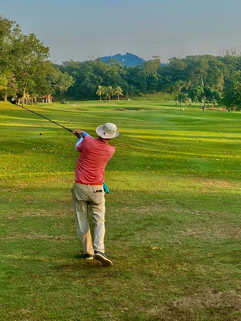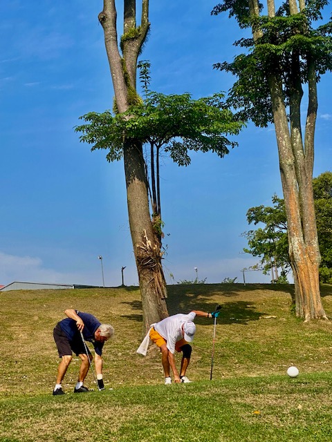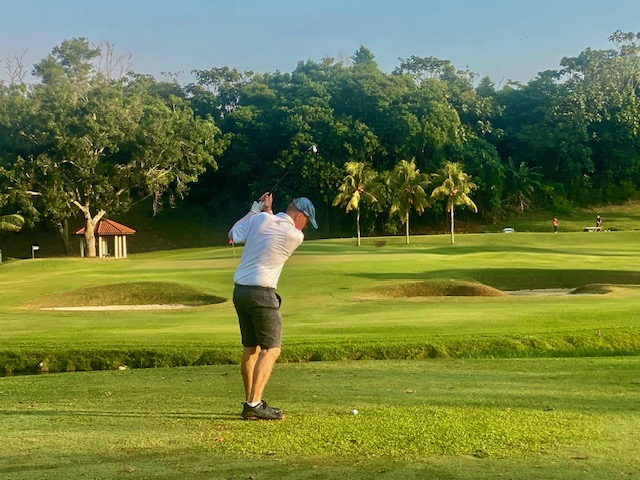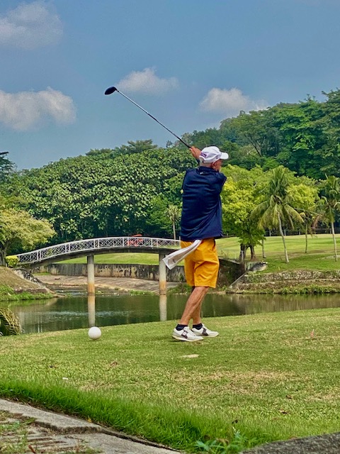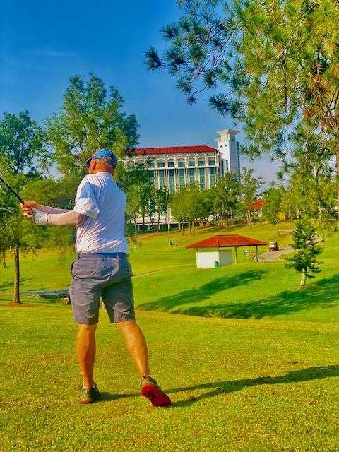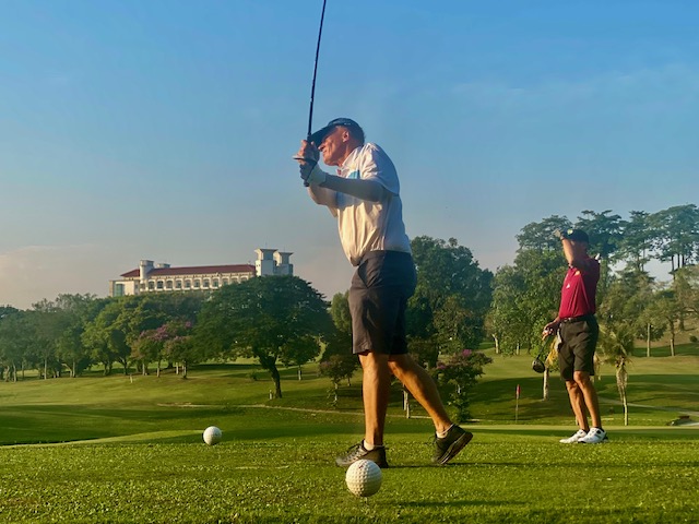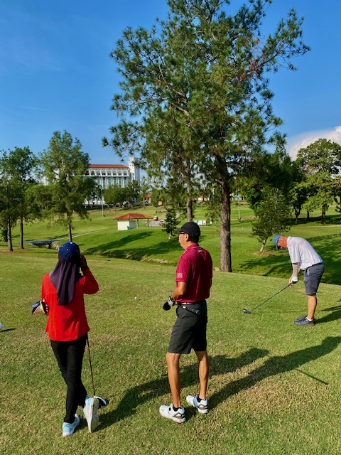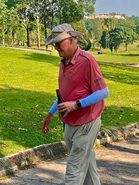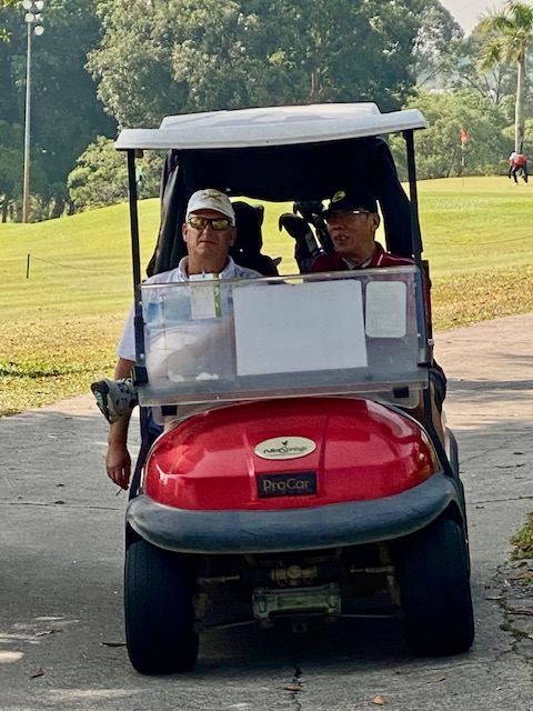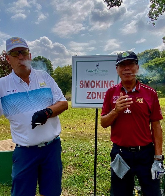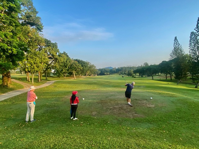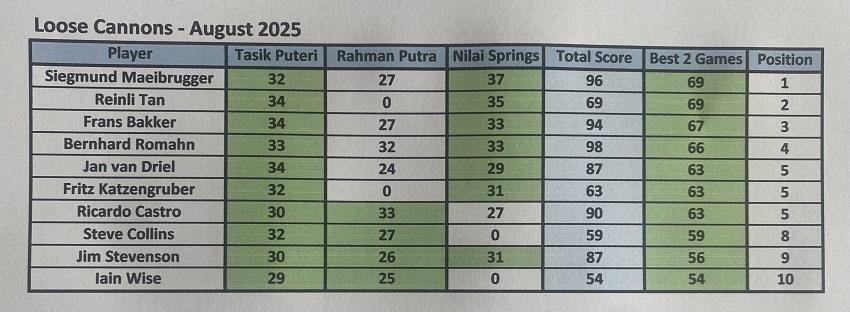 Two flights started before 8:00 am on the Pines nine, crossing over to the Island nine. The weather was dry but not too hot, creating a good conditions all morning. Course was in great condition, nice fairways and very good greens. Today’s winner was Siegmund Maeibrugger with a solid 92 for 37 points, second was Reinli Tan with a reasonable 105 for 35 points, and in third place two players, Bernhard Romahn and Frans Bakker both with 33 points. With these results Siegmund Maeibrugger is now leading the monthly competition with 69 points, second is Reinli Tan also with 69 but Siggy has higher score (37), and in third place Frans Bakker with 67 points, so everything open to be decided in the last game of the month at Amverton Cove. Lunch at the club to celebrate Fritz Katzengruber 100 games milestone with a box of balls gift and he contributed with 100.00 rm to the bill.