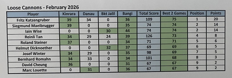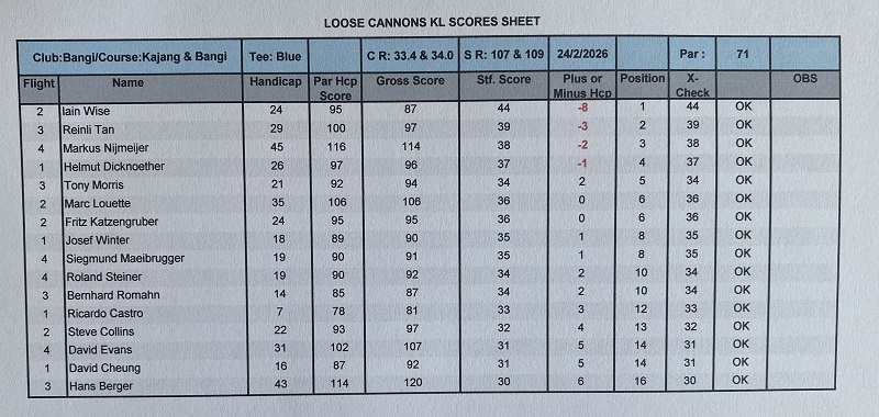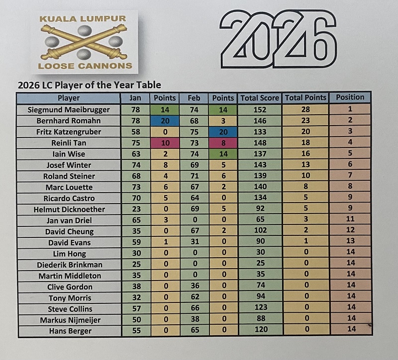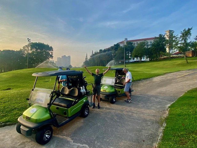Three flights started on time at Pines nine and crossing over to the Island nine. We had a big group of Koreans in front of us and the round was quite slow specially the last 4 holes, and it toked 5 hours to finished the round. The weather was very hot and dry, with nice fairways and very good greens conditions beside the challenging pin position. Last week we all had a good results, but this week the results were quite opposite with the first 3 places scoring only 30 points with Ricardo winning OCB. Lunch at the club and Ricardo Castro contributed with 400.00 rm celebrating his milestone reaching 400 LC games. See you guys next week at Bkt Beruntung.
