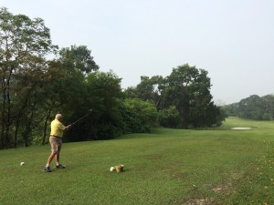 At the last moment some lost cannons found their way back to the group so we ended up with 3 full flights attacking Bangi. I haven’t seen it that busy in Bangi for a long time. Lots of golfers were probably out to play one last game before another lock-down started. Despite all this we were on our way around 8:00 am; playing the blue tees since Bangi is not that long. The course is in a good condition and still improving; very good value for money. Unfortunately flight 2 and 3 were held up by a slow flight that sneaked in on the 2nd 9. It took us at least half an hour more to get around.