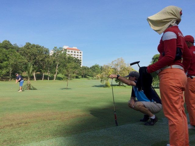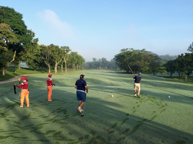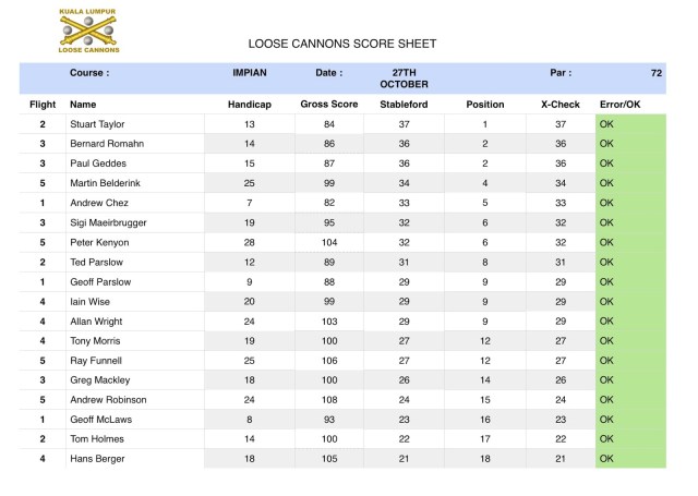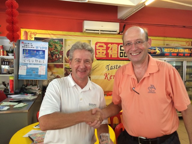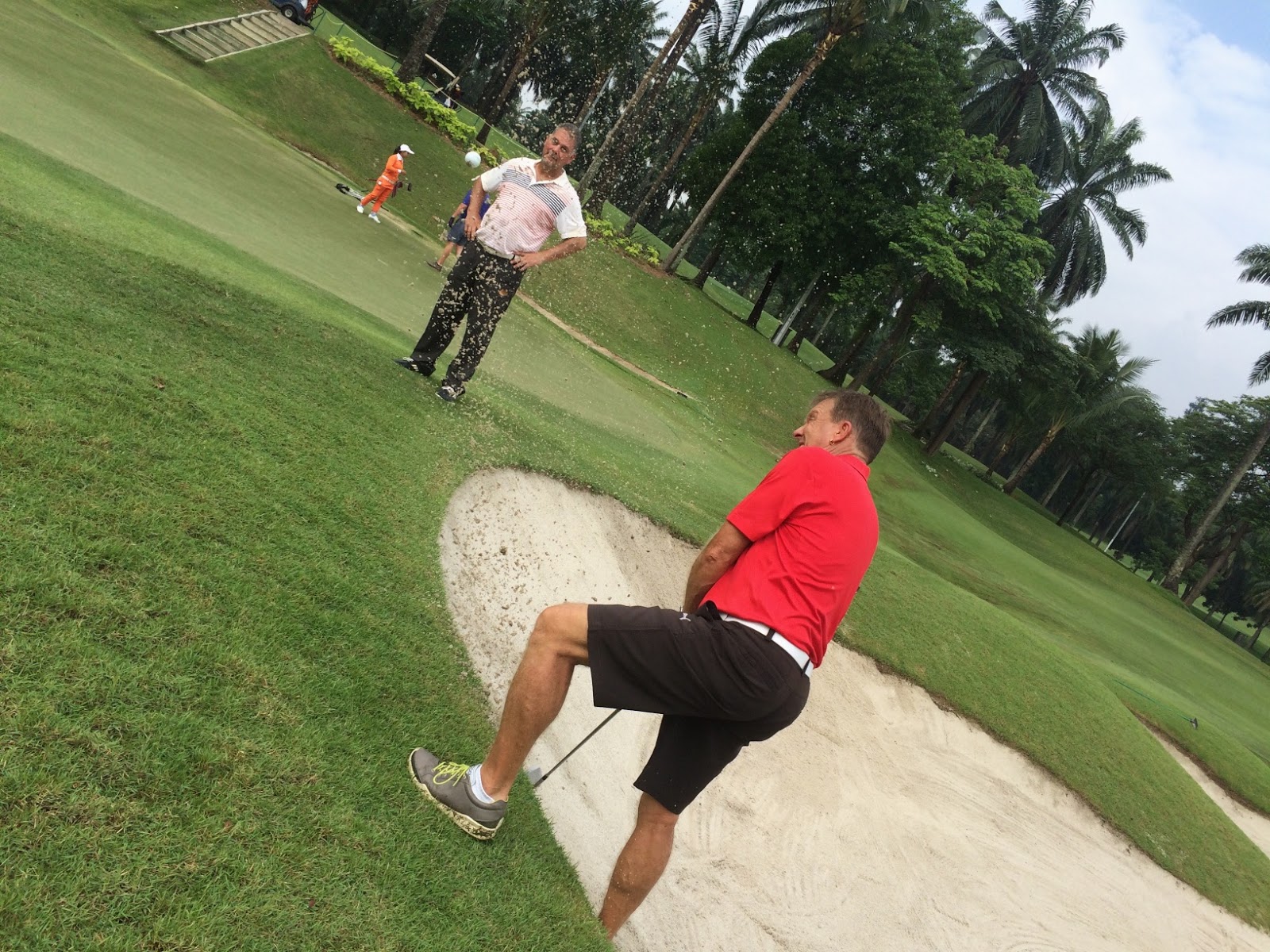 Conditions were good this morning for the October Monthly Trophy game at Impian Golf & Country Club. We had 18 players with Sigi taking up a last minute position when Ren Li cancelled. The course has been seen in better shape and again we played off the blue tees as the white tees seemed to have now disappeared from this course. Greens were good although some were a little bare in patches and inconsistent.