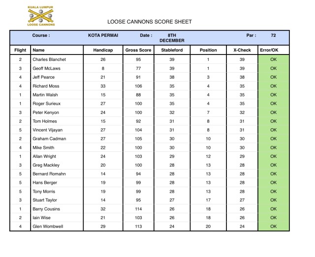 Results – Kota Permai Golf & Country Club – 8th December 2015