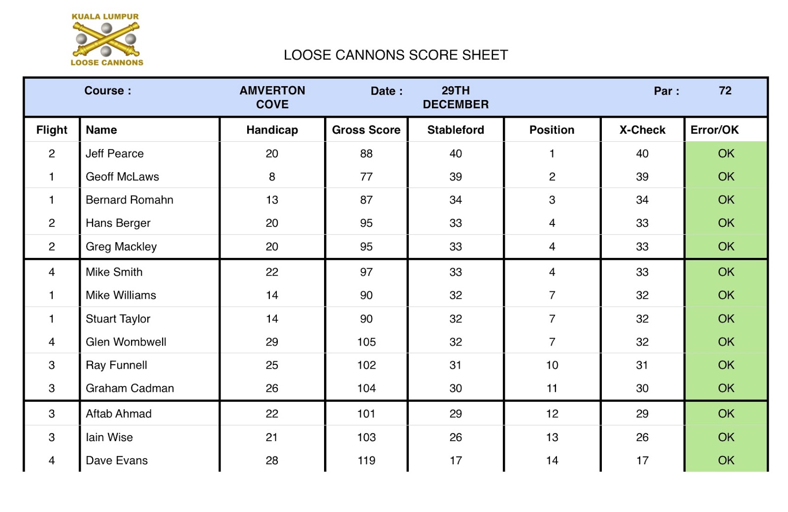 Results – Nilai Springs Golf & Country Club – 1st December 2015