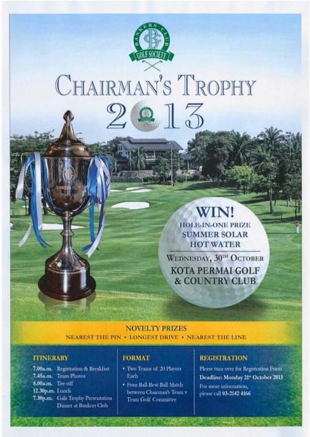 We are playing at Kota Permai next week – thanks to Barry who made this booking. Costs will be RM220/pax inclusive of caddy/buggy. Two tee boxes have been confirmed at 7:30am and we need to be at the tee box 10 mins before tee off … so please be at the club by 7:00am latest.