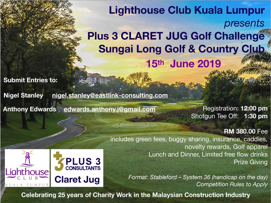 Lighthouse Club Plus 3 Claret Jug Golf Challenge – Sungai Long – 15th June 2019 On May 23, 2019 By Stuart TaylorIn golf, Lighthouse Club, Loose Cannons, Sungai LongLeave a comment