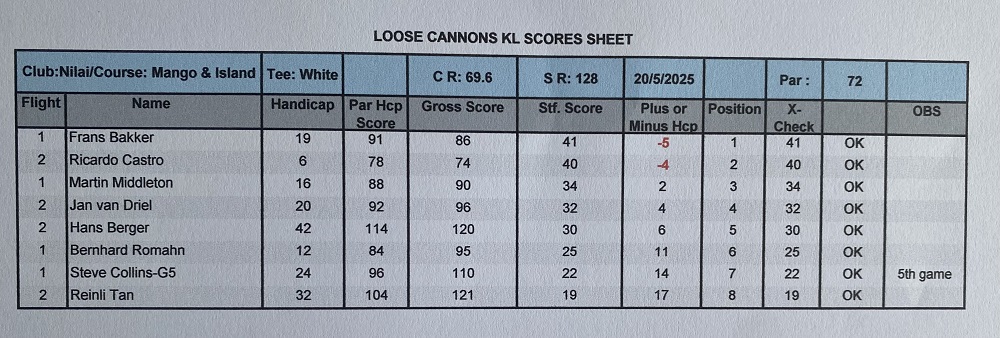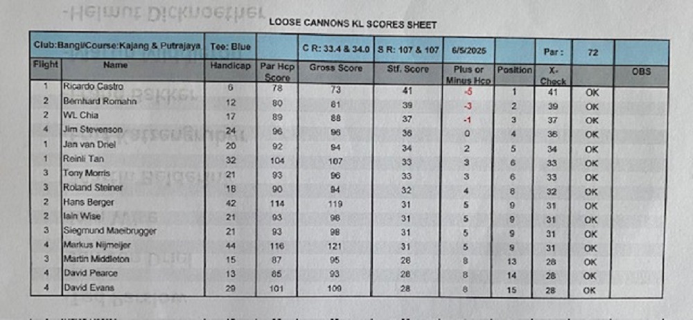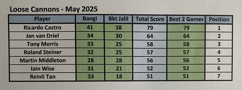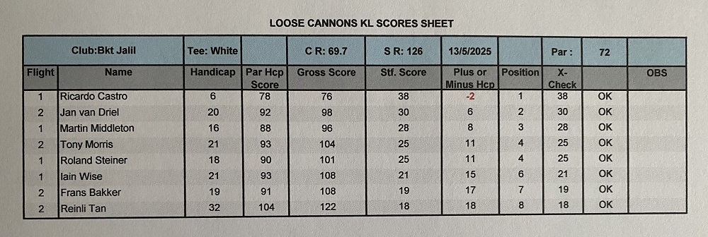 The Loose Cannons gathered this week at the beautiful KGSAAS Golf Club, where 11 players across 3 flights teed off on the Sultan Course, later continuing on to Alam Shah for the second nine. Each flight was accompanied by two caddies, and with the course not too crowded, we enjoyed a relaxed pace throughout the round.
