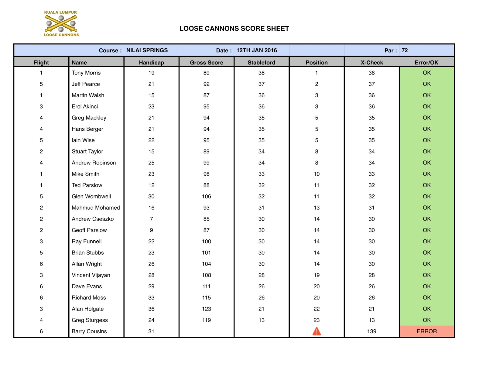 Today we welcomed back Paul Geddes, for the first time in Loose Cannons for a long time! Welcome Paul!! He paid us back with a voucher which saved us quite some money on the green fees…👍