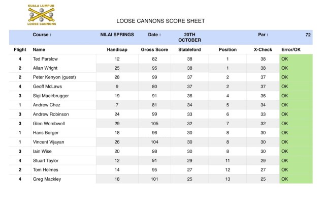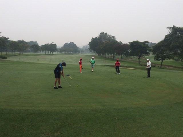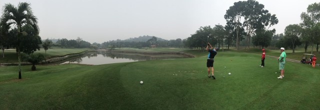 A beautiful clear day, though hot and humid, as twenty Cannons let loose on the fairways of Nilai Springs. We got off smoothly on two tee-boxes playing the Island and Pines 9’s. Course condition was very good on the whole although many of the bunkers were full of water due to the heavy rain of yesterday.