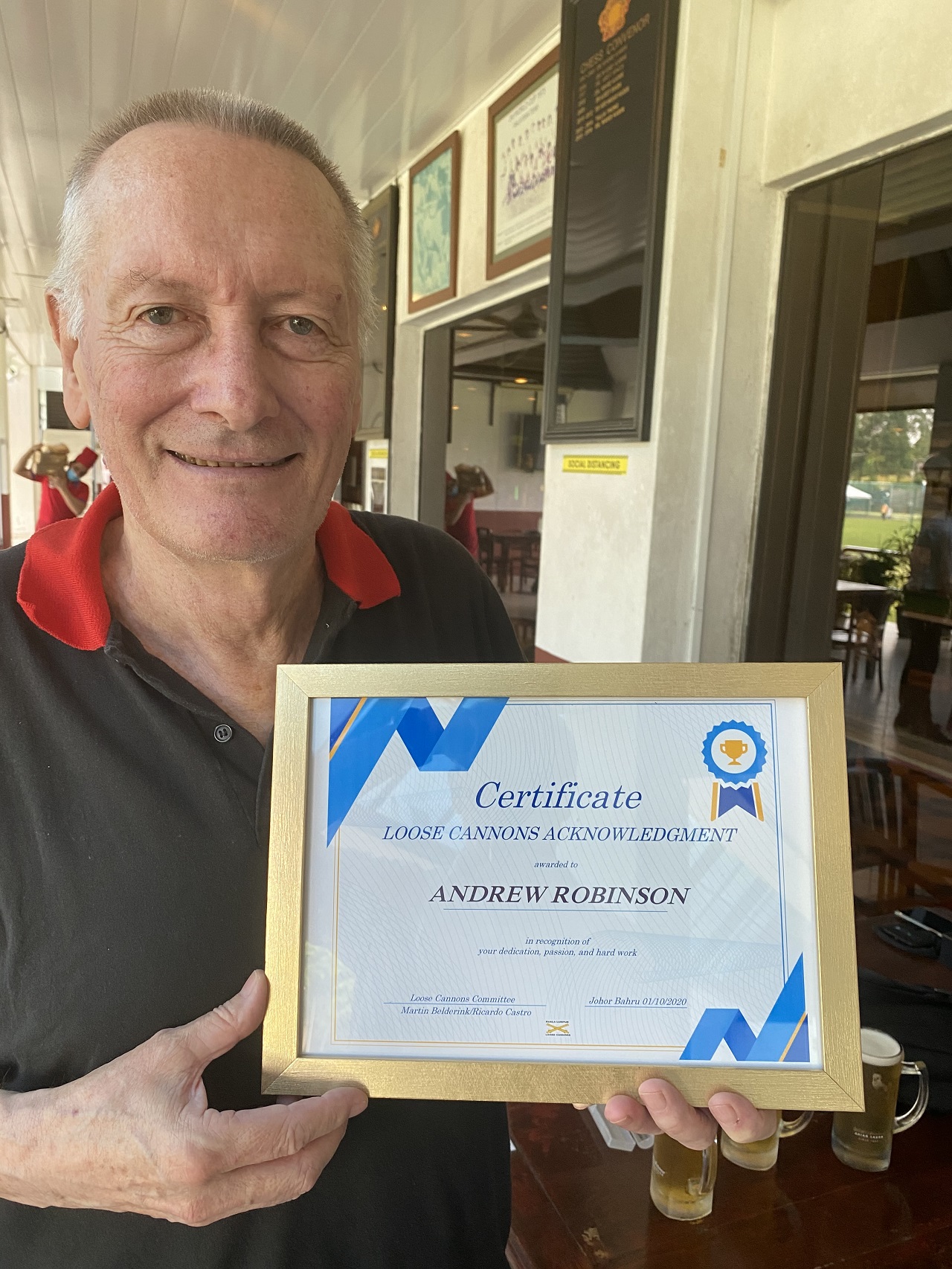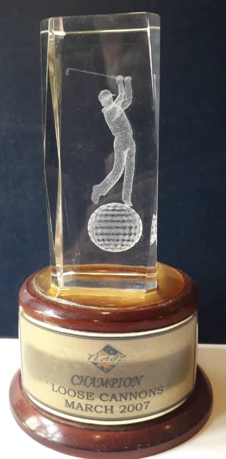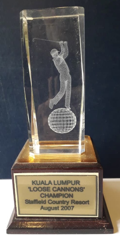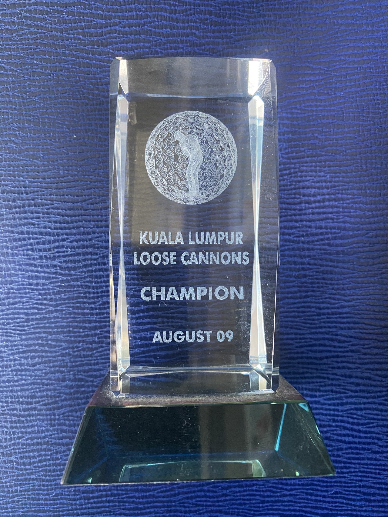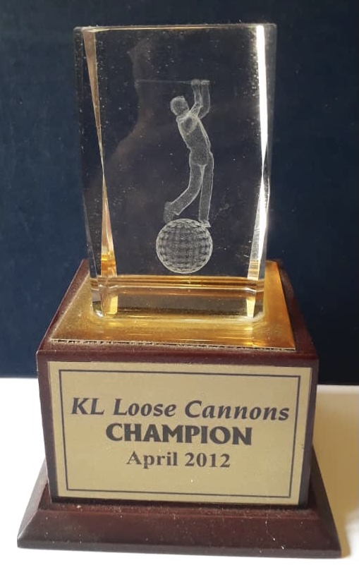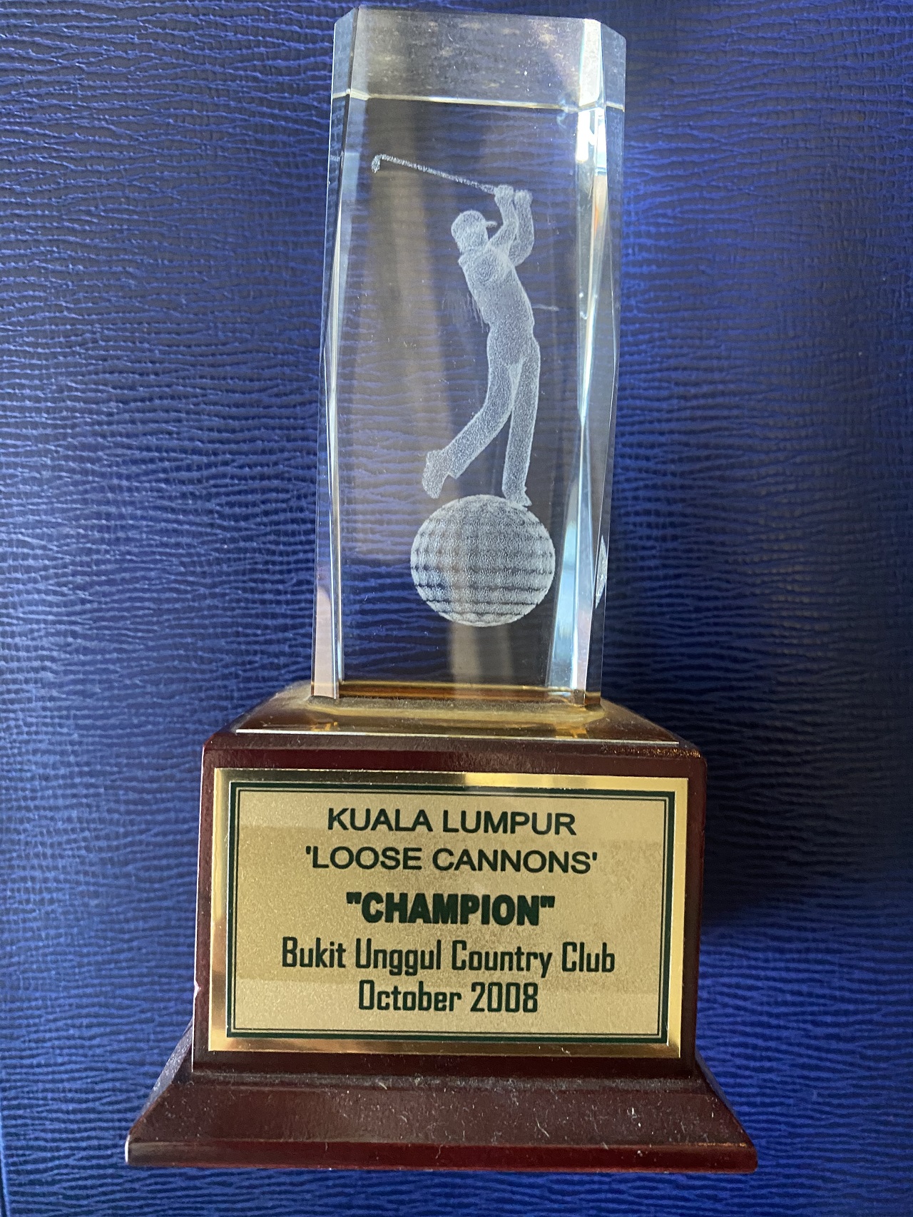 After retiring I opened a Bar & Restaurant called Flagz in Desa Sri Hartamas, Kuala Lumpur, in late 1999. Amongst my customers were a few golfers (I use the term golfer in its broadest possible sense) and we started playing together on a Tuesday morning followed by lunch washed down with a lot of amber nectar. The original group comprised myself, Andrew Robinson, Klaus Kretzschmar and Richard Moss. This group quickly grew to include Ian Geekie, Iain Wise (when on R&R visits), Raymond Keys, Roger Smith (deceased), Rikki Ingham, Yoong, Tony Morris and Paul Hobbs. In 2002 Flagz held its first Golf Day, won by Roger Smith. In those early days the group called itself Flagz Loose Cannons and in January 2004 we started to keep records and a proper handicapping system and the group continued to grow with 3 to 5 flights gathering every Tuesday morning at various courses in and around KL. The winner of the last game of the month won a handsome trophy.