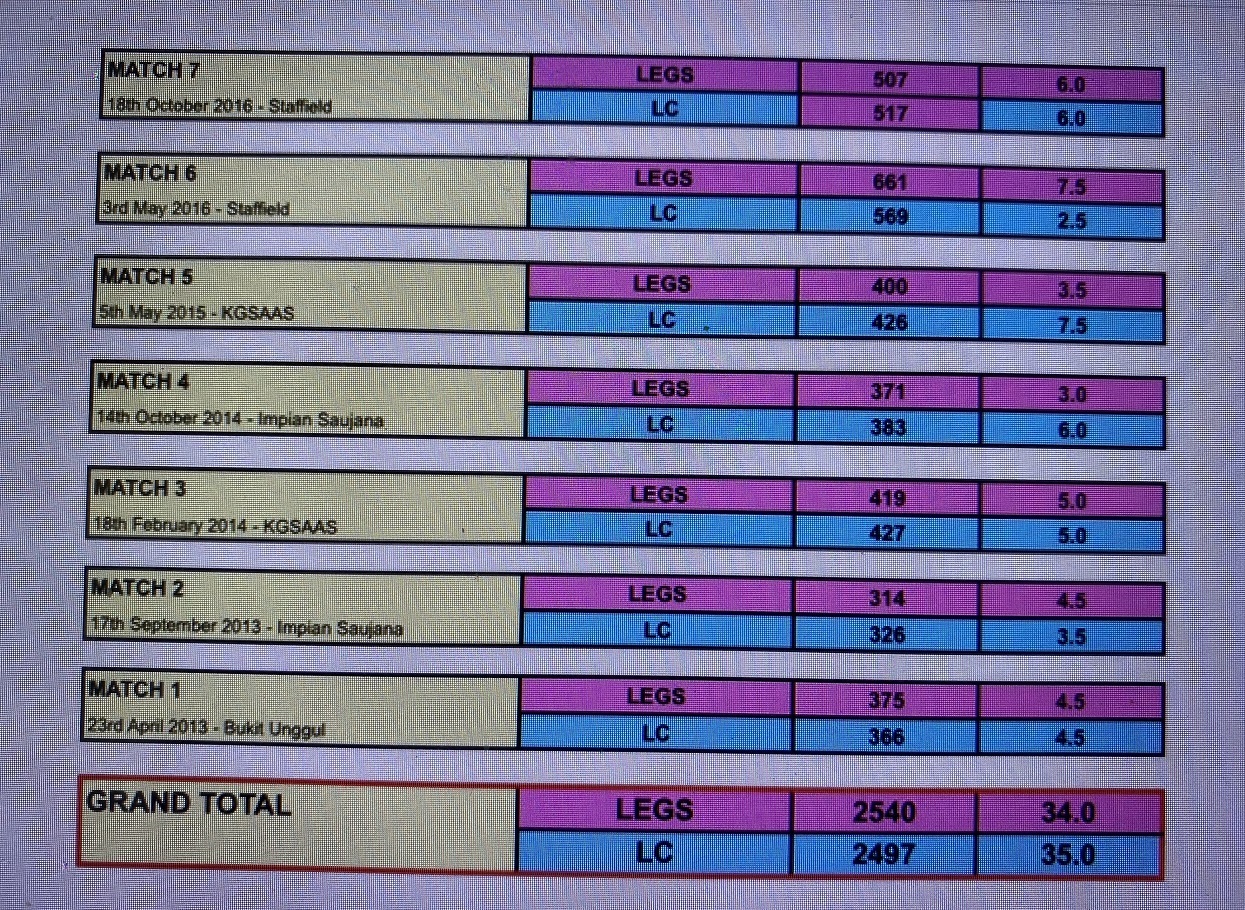 LOOSE CANNONS KL vs LEGS KL-2013 TO 2016